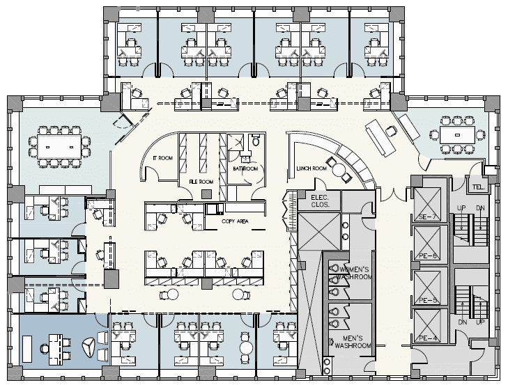 High occupancy costs are having a deleterious effect on law office profitability and the single most effective strategy is to increase office space efficiency. Space efficiency or “space optimization” can be gained through the following: